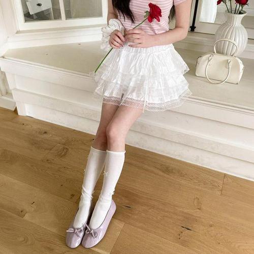 [옷자락] 여자 봄여름 코튼 레이스 캉캉 미니스커트