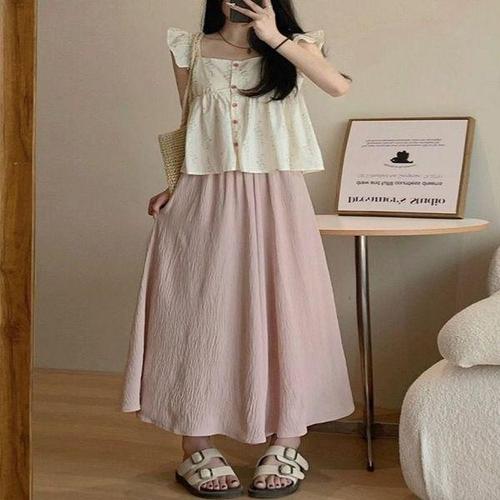 [라일리여성의류] Rly 나시 팬츠 여자 여름 플리츠 바지 와이드 세트
