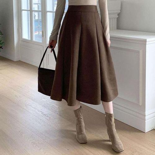 [옷자락] 여자 스웨이드 와이드 플리츠 롱스커트