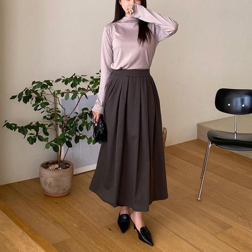 [옷자락]여자 뒷밴딩 플리츠 플레어 롱스커트