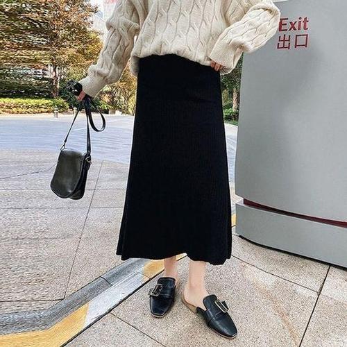 [에이치플러스몰]허리밴딩니트스커트 여성편한 스커트롱 플리츠스커트
