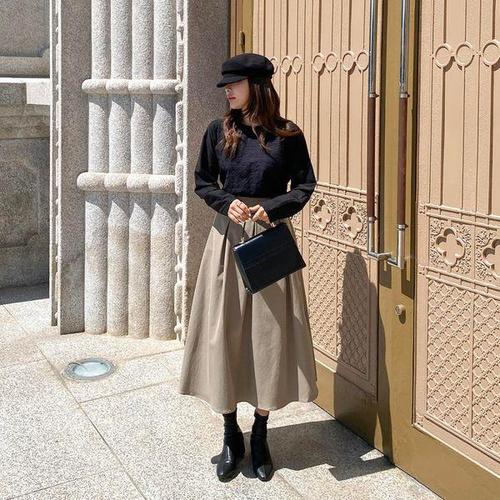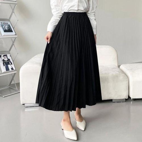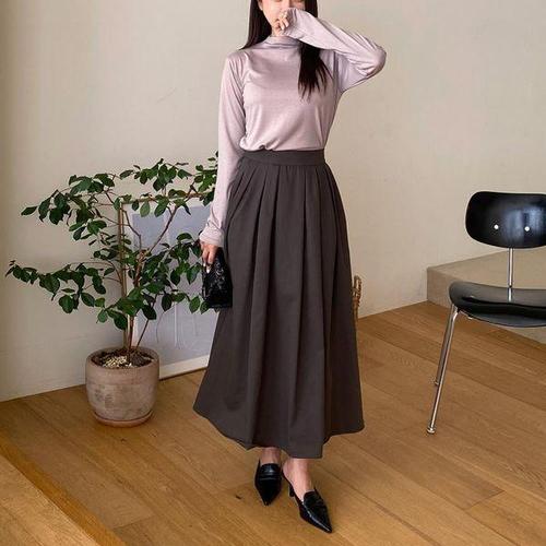 [옷자락] 여자 데일리 오피스룩 편안한 허리밴딩 플리츠 롱스커트