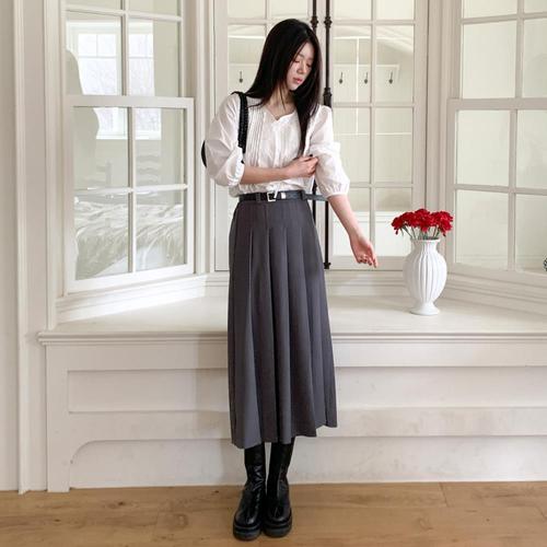 [옷자락]여자 데일리 오피스룩 플리츠 벨트세트 롱스커트