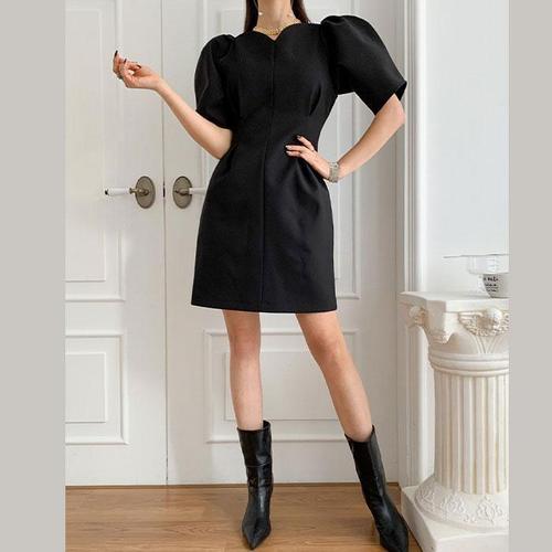 [옷자락]여성 핀턱 셔링 퍼프 미니 원피스 봄 데일리룩