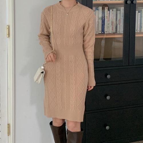 [다잇템]여자 스웨터 슬림핏 피셔맨 위빙 중간 원피스
