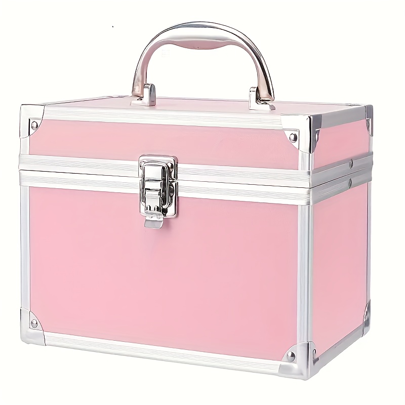TEMU 프로페셔널 메이크업 아티스트용 조절 가능한 수납 박스와 잠금 가능한 칸막이가 있는 메이크업 케이스 - 핑크 블랙 골드 메탈 화장품 정리함