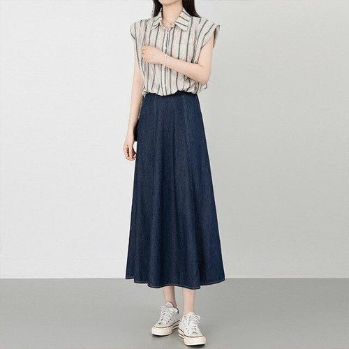 [핑크엘리제]스트라이프 여름 데님 셔츠데아투피스