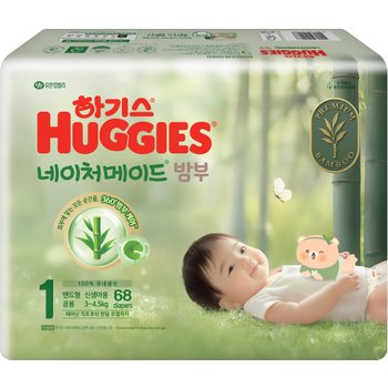 하기스 네이처메이드 밤부 밴드형 기저귀 신생아용, 1단계, 68매
