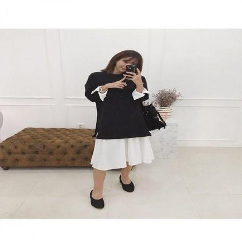 [오너클랜]인기상품 이쁘다요 시크 루즈핏 배색롱 화이트 원피스 세련미 [WFLMPHL_260419]