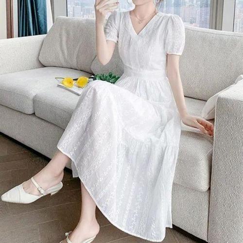 [오너클랜]인기상품 여름용 루즈핏 화이트 시폰 롱 반팔 원피스 [WFLLRQ2_260305]