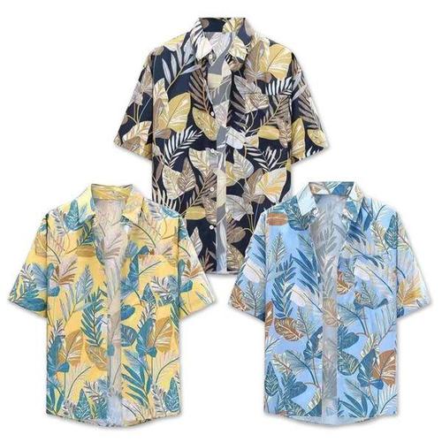 [에이치플러스몰]남성 3컬러 하와이안셔츠 야자수 패턴 반팔 셔츠남방