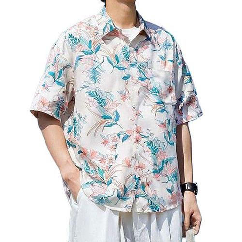 [에이치플러스몰]남성 플라워 패턴 하와이안 셔츠 루즈핏 여름 반팔