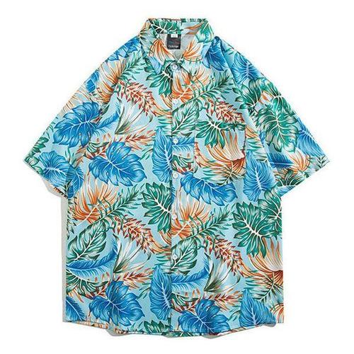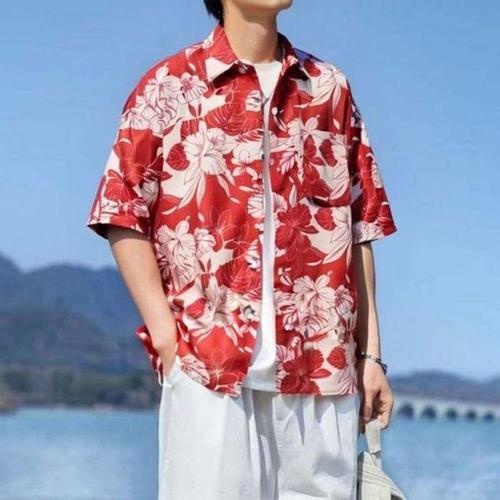 [에이치플러스몰]하와이안 남성 여름 반팔 셔츠 바캉스 꽃 무늬 셔츠