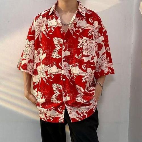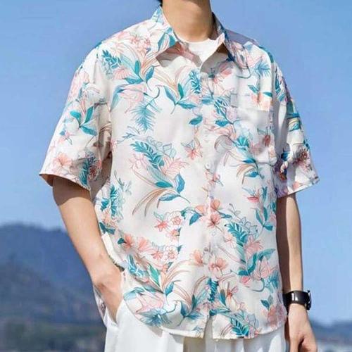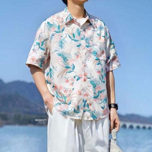 [에이치플러스몰]남성 플라워 패턴 하와이안 셔츠 루즈핏 여름 반팔