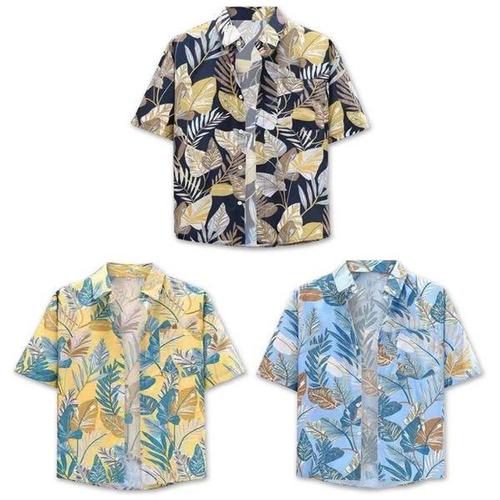 [에이치플러스몰]남성 3컬러 하와이안셔츠 야자수 패턴 반팔 셔츠남방