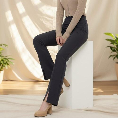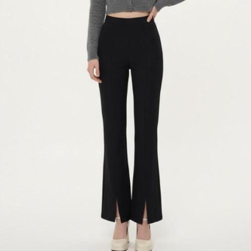 [옷자락]여성용 신축성 좋은 하이웨이스트 슬릿 부츠컷 슬랙스