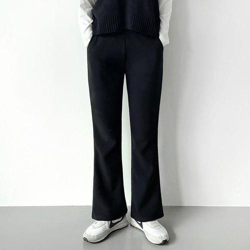 [옷자락]여성 신축성 데일리 하이웨이스트 슬릿 부츠컷 팬츠