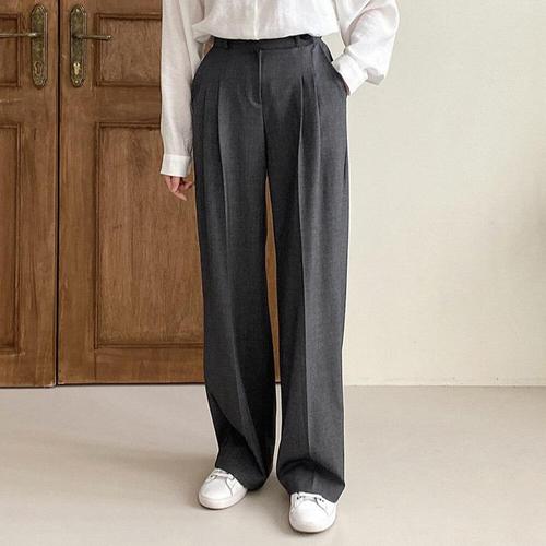 [옷자락] 여성 일상 핀턱 와이드 하이웨이스트 슬랙스