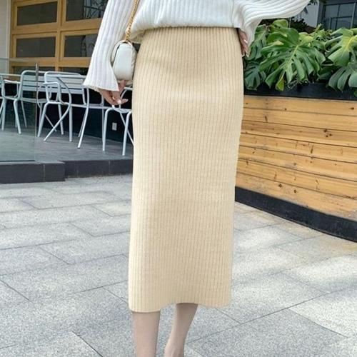 [엄지척]여성 가을 하이웨스트 니트 골지 H라인 롱 스커트_19959282_667501
