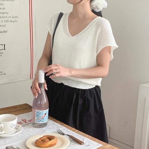 [옷자락] 여자 브이넥 하찌 루즈핏 니트 나시