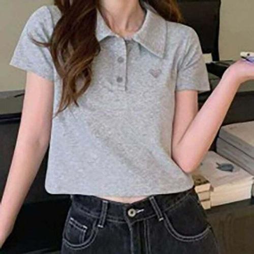 [오너클랜]인기상품 베이직여자 하트 로고 셔츠칼라 캐주얼 크롭핏 크루넥티 [WFLEMWO_260416]