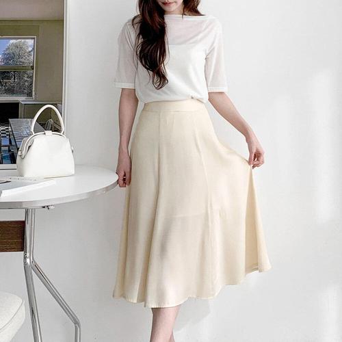 [다잇템]여자 하프 피크닉룩 비침 봄옷 후레아 롱스커트