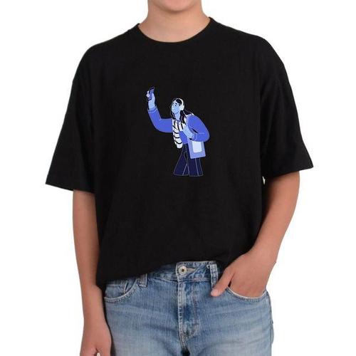 [에이치플러스몰]반팔라운드 학생 모바일폰 사진 헤드폰 그림 모든사이즈