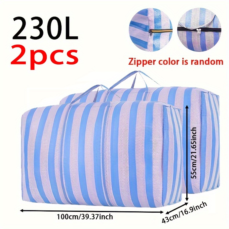 TEMU 2개 세트 대형 블루 & 퍼플 수납백 - 크리스마스 선물, 옷, 담요, 여행용 가방 수납용, 더블 지퍼 & 핸들 디자인, 공간절약형, 내구성 강한 구조, 이사 및 홈 정리 필수품, 다용도 여행용 수납 정리함