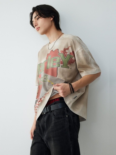 [할리데이비슨 컬렉션스®] 할리 스프레이 오버핏 티셔츠_아이보리 HH16111071