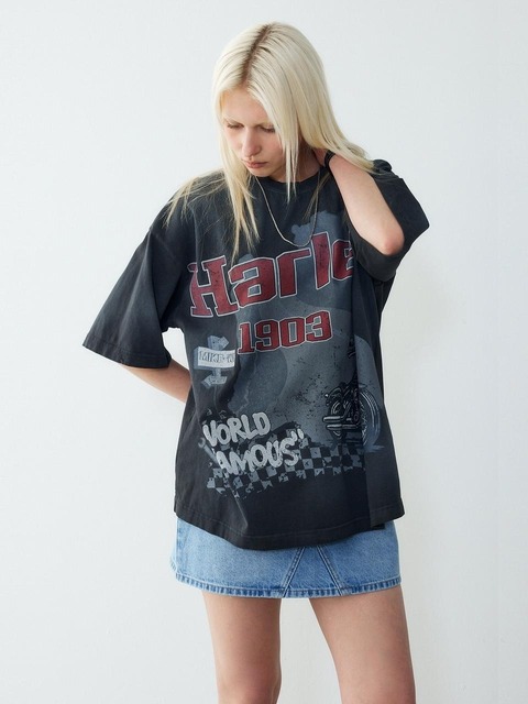 [할리데이비슨 컬렉션스®] 할리 스프레이 오버핏 티셔츠_다크 그레이 HH16111071