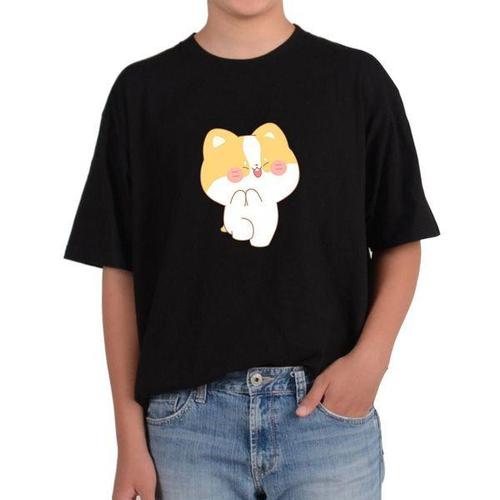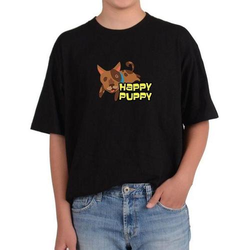[에이치플러스몰]반팔라운드 HAPPY PUPPY 행복한 강아지 신나는 재롱을 그림 모든사이즈