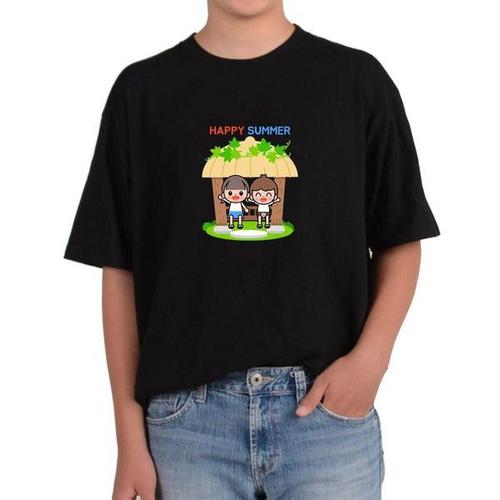 [에이치플러스몰]반팔라운드 해피썸머 방학 휴가 친구 그림 모든사이즈