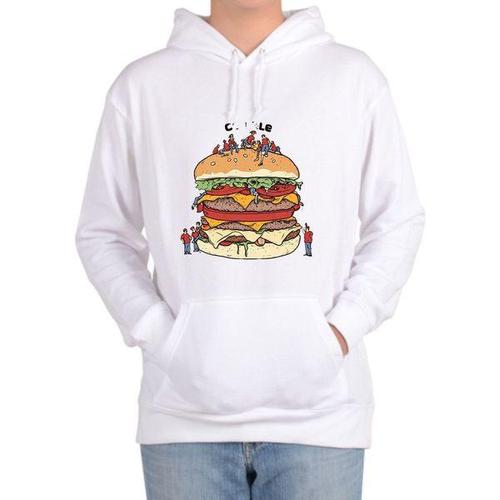 [에이치플러스몰]후드티 전사이즈 햄버거 풍자그림 정크푸드