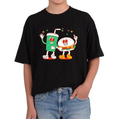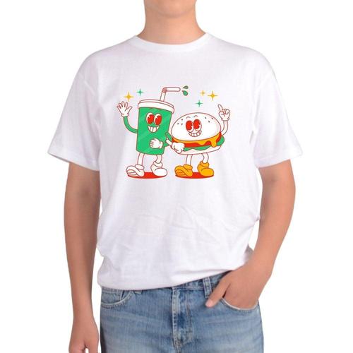 [에이치플러스몰]반팔라운드 햄버거와 콜라 HAMBURGER COKE 패스트 전사이즈