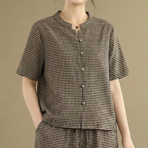 [퀸이즈][퀸이즈] [77까지]허드 모노 체크 린넨 블라우스