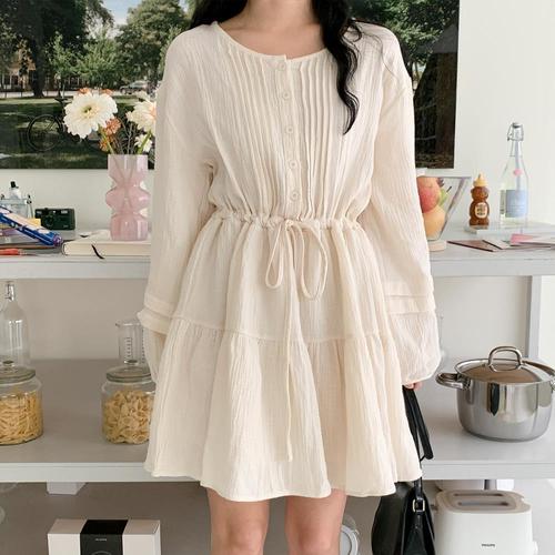 [옷자락] 여자 라운드넥 허리스트링 반오픈 캉캉 원피스