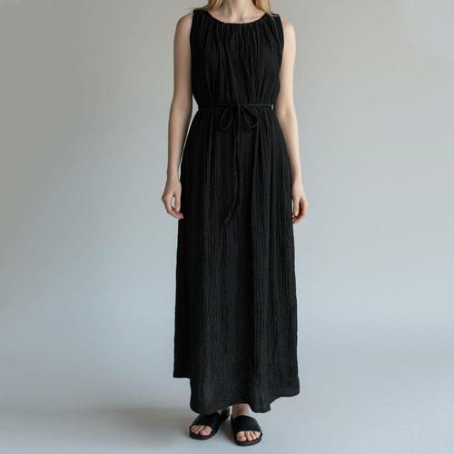 [옷자락]여자 민소매 플리츠 허리스트링 롱 데일리 원피스