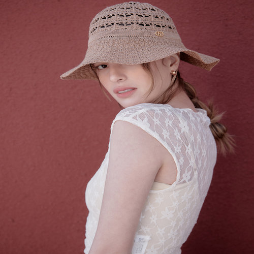헤지스 액세서리 베이지 짜임 면혼방 와이드썬캡 (HIHE6E113I2)