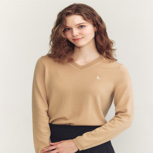 헤지스 여성 [울100] 베이지 브이넥 스웨터 (HSSW4CC76I2)