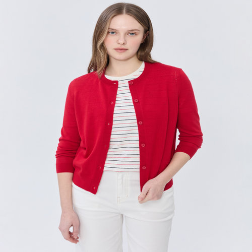헤지스 여성 [스테디셀러][울100]레드 긴소매 라운드넥 가디건 (WSSW5AC15R2)