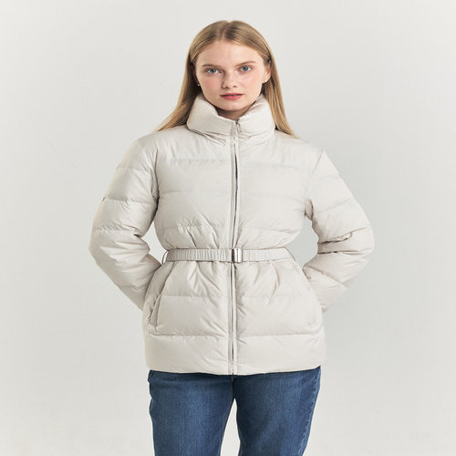 헤지스 여성 [구스다운] 아이보리 하이넥 벨티드 하프 경량다운 점퍼 (HSJU4D904IV)