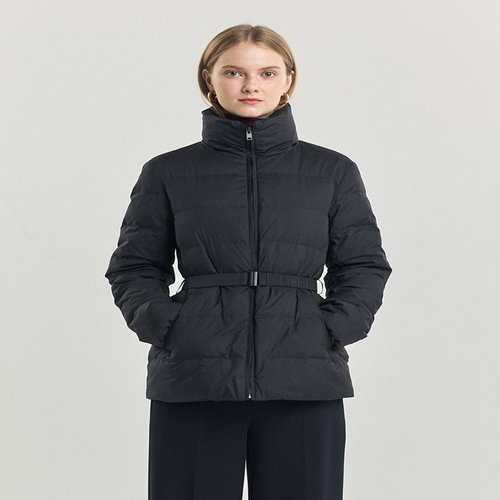 헤지스 여성 [구스다운] 다크그레이 하이넥 벨티드 하프 경량다운 점퍼 (HSJU4D904G3)