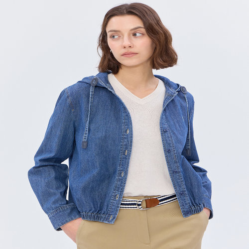 헤지스 여성 [스테디셀러][데님]블루 아우터형 후드 긴소매 셔츠 (WSSH5B203B2)