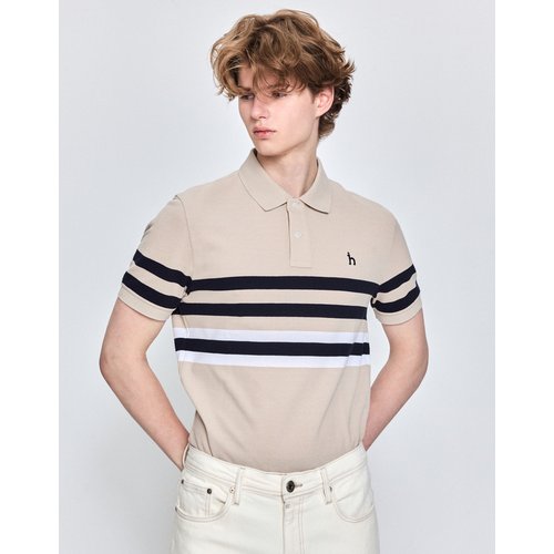 헤지스 [25SS] 베이지 컬러블럭 반팔 카라 티셔츠 HZTS5B434I2