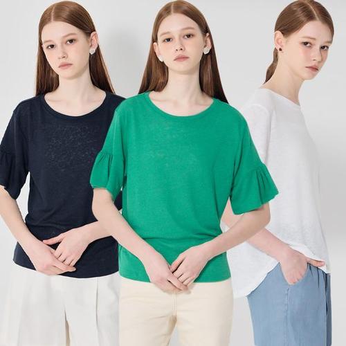 ★3종세트★[홈쇼핑방송/르오트(LeOT)] 린넨블렌디드 퍼프 슬리브 데일리 반팔 티셔츠 3종세트