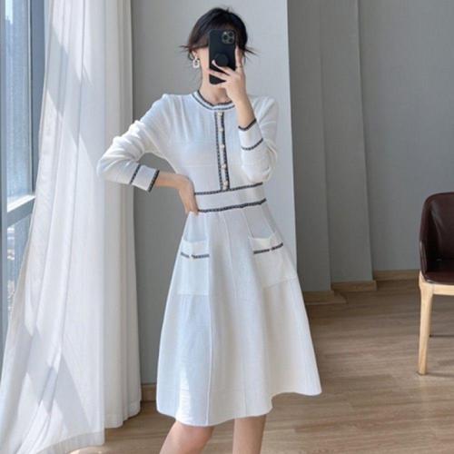 진주버튼 배색라인 니트 원피스 오피스 하객 상견례룩 블랙화이트 WFLLQSU