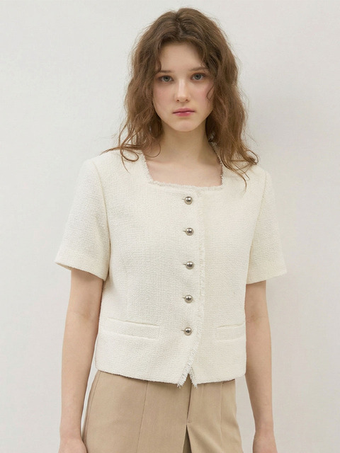 [시티브리즈] 트위드 스퀘어넥 반팔 자켓_WHITE