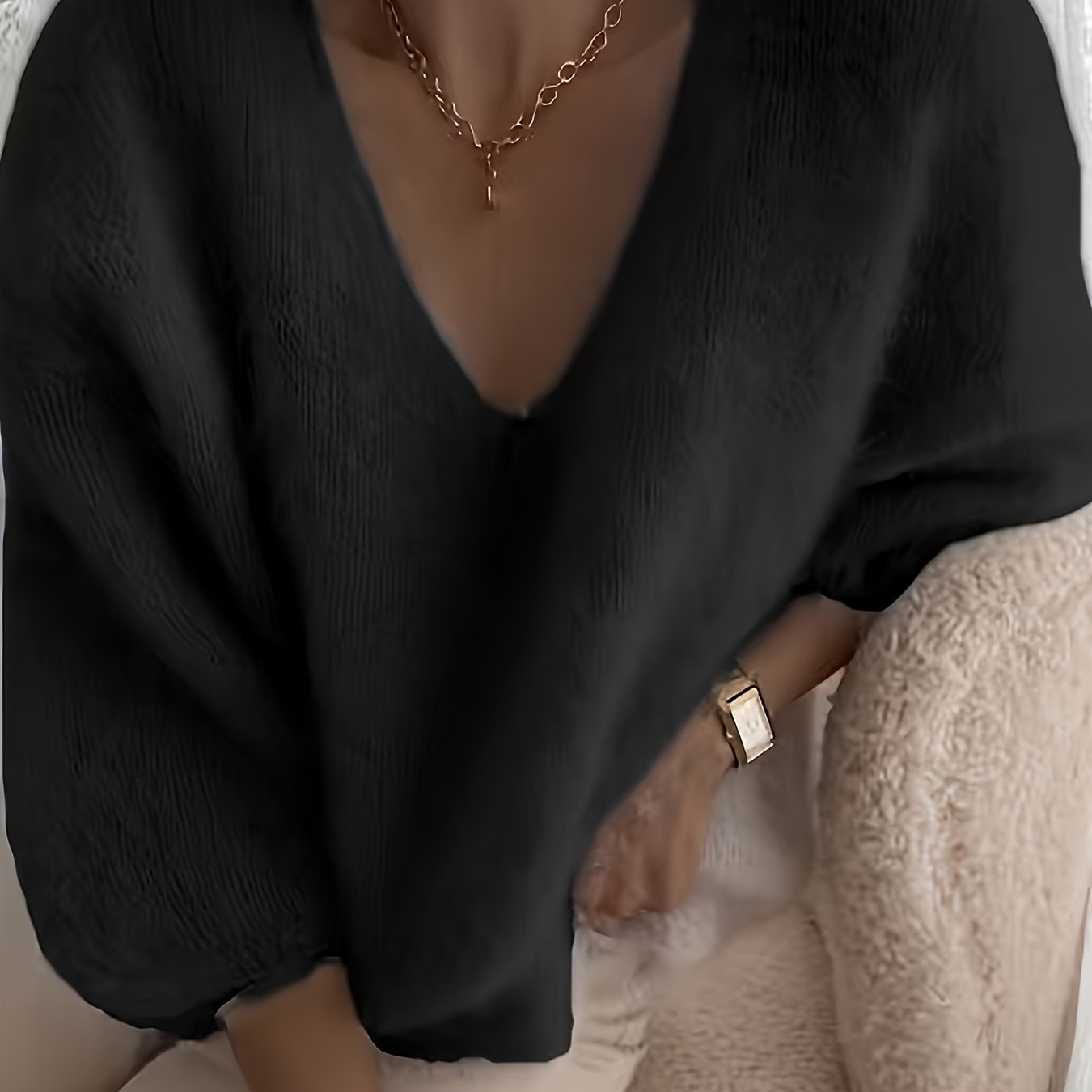 TEMU 새로운 루즈 V넥 스웨터, 가을철에 적합한 스타일리시하고 우아한 여성 가을/겨울 의류