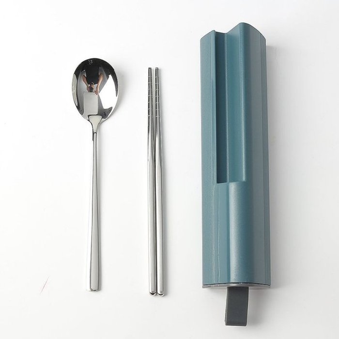 도매토피아 DOTO 식도락 휴대용 수저 + 포크 세트, 블루그린, 1세트, 숟가락 + 젓가락 + 포크 + 케이스