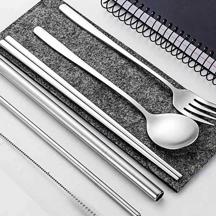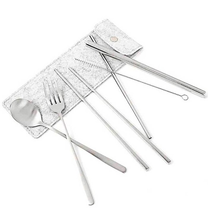 이글례 2세트 휴대용 캠핑 커틀러리 케이스 6피스 스테인리스 여행용 은식기 나이프 포크 스푼